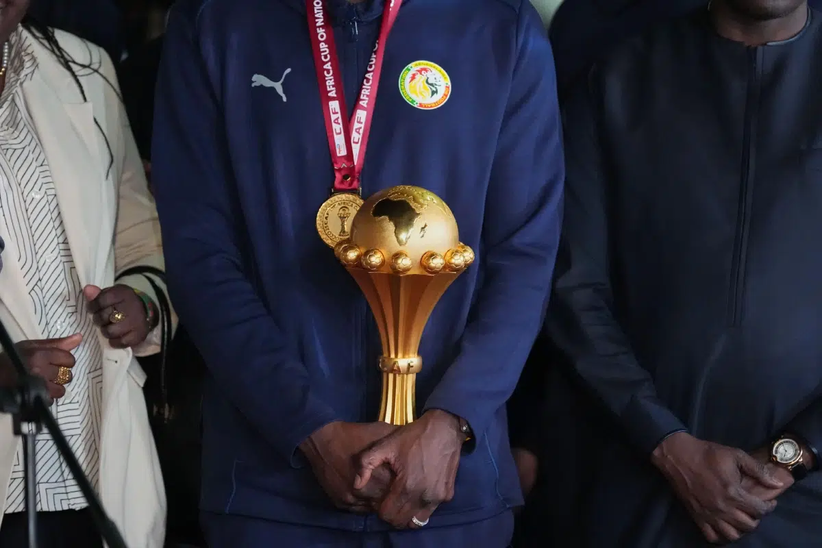 Senegal's Kalidou Koulibaly holds the Africa Cup of Nations trophy, 2026